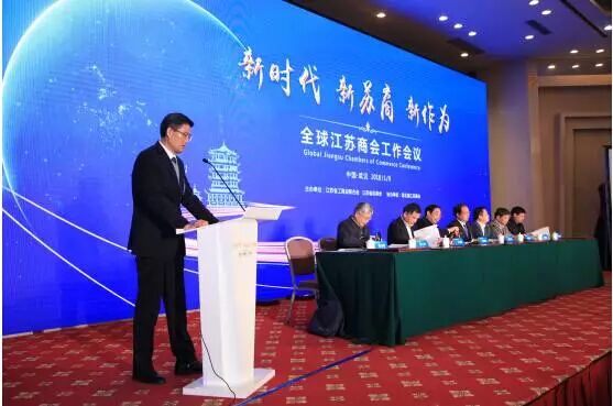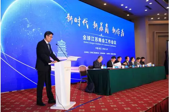 2018年元月8日,以“新时代 新苏商 新作为”为主题的全球江苏商会工作会议在武汉东湖国际会议中心隆重举行。全国30个省级江苏商会会长、秘书长以及来自美国、德国、澳大利亚、加拿大、柬埔寨等海外江苏商会的代表200余人齐聚江城武汉。
